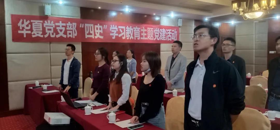 之后,華夏黨支部在酒店會議室開展“四史”學(xué)習(xí)教育主題黨建活動。激昂澎湃、振奮人心的國歌——《義勇軍進行曲》拉開了會議帷幕,全體黨員起立,唱國歌。