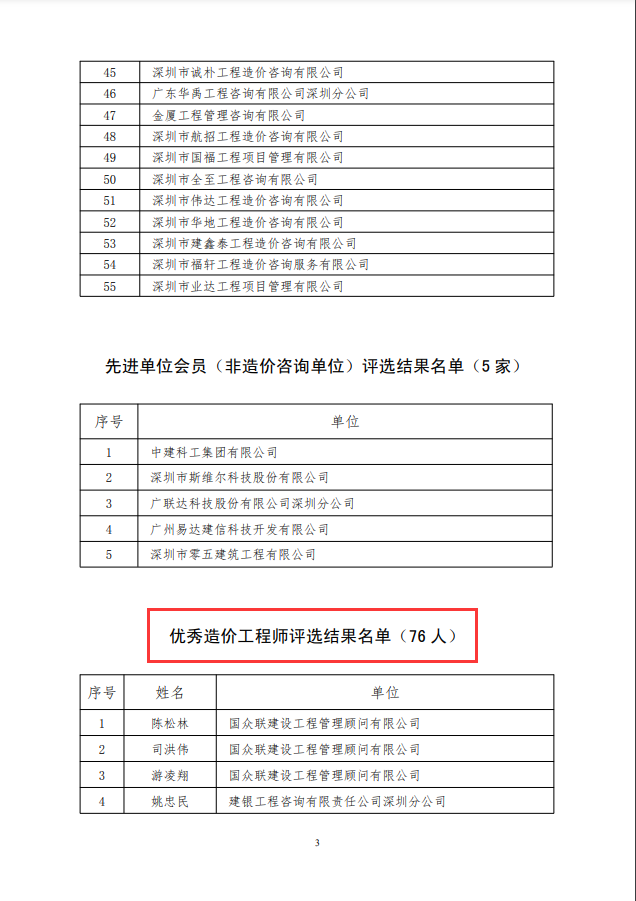 二、我司陳金蘭、牟金橋被評(píng)為“深圳市優(yōu)秀造價(jià)工程師”