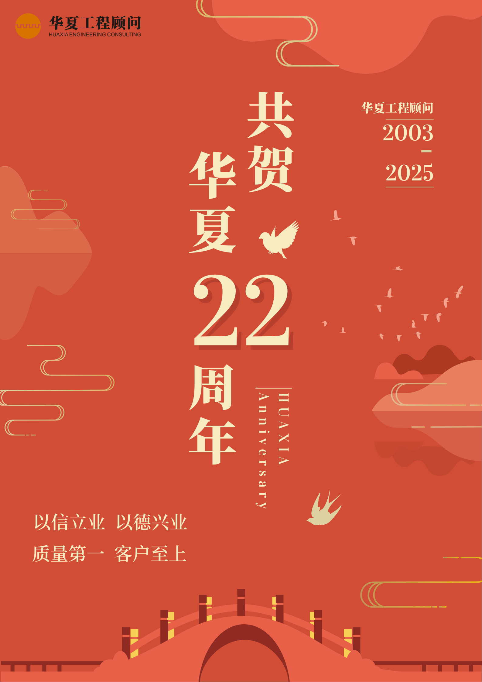 2025年4月18日,這個日子對于華夏工程顧問而言,有著非同尋常的意義。今天,我們迎來了公司成立的第22個周年紀(jì)念日。