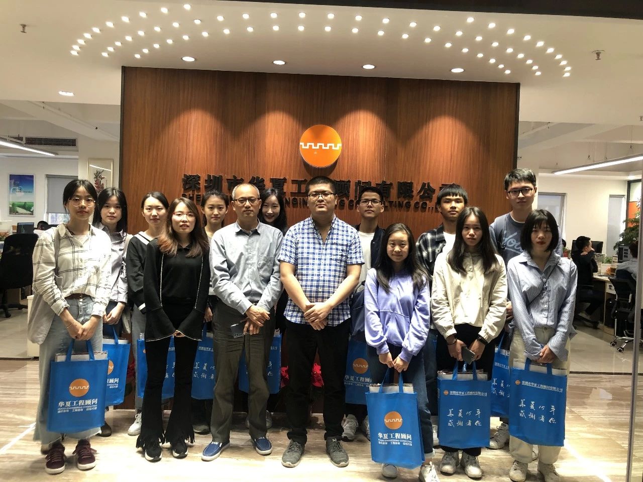 公司員工與來訪學(xué)生合影留念