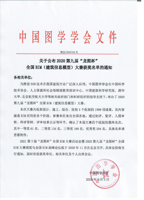 9月3日,2020年第九屆“龍圖杯”全國BIM(建筑信息模型)大賽獲獎名單公布,深圳市華夏工程顧問有限公司《華僑城創(chuàng)想大廈BIM造價應(yīng)用項(xiàng)目》榮獲施工組優(yōu)秀獎。